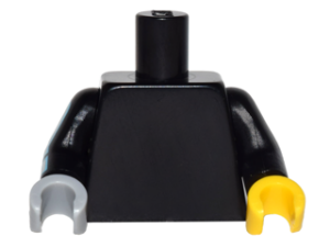 973c075 – Torso Plain / Black Arm Left / Black Arm Right with Silver Mechanical Pattern / Yellow Hand Left / Light Bluish Gray Hand Right